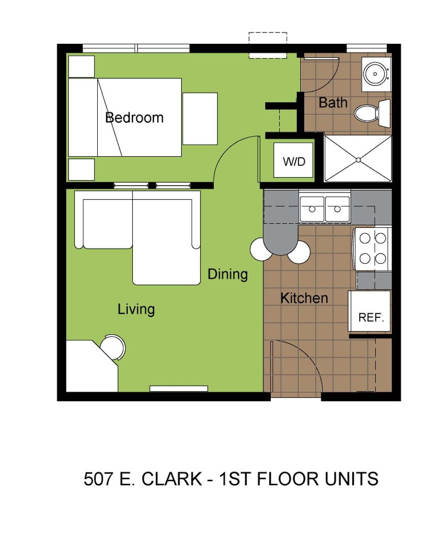 These convenient 1-bedroom, 1-bath apartments feature a large living and dining area, flat-screen TV, dishwasher, and in-unit laundry. Located near shopping, restaurants, and the University of Illinois Engineering Quad, offering a comfortable and secure place to live and study.