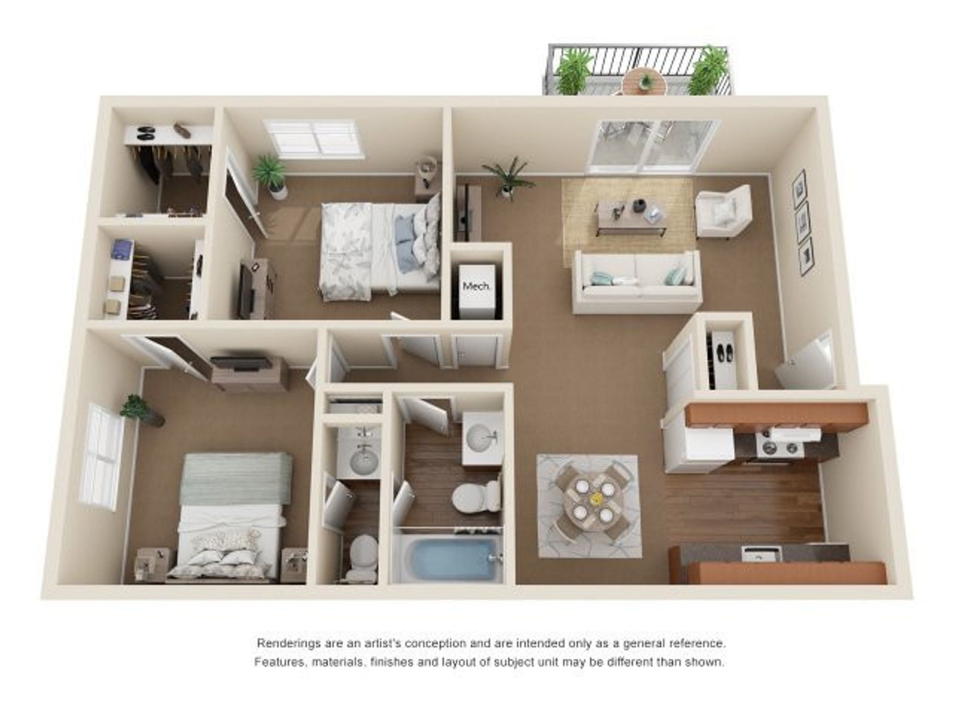 Introducing The Walker, a spacious 2-bed, 1-bath apartment at The Village on University, offering 835 sq. ft. of comfortable living space. Enjoy a fully equipped kitchen, expansive living area, and generous closet space.