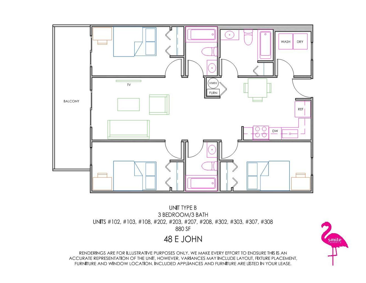 Prices displayed are for individual leases. This property offers both individual and joint and several leasing options. Please contact Smile Student Living for more information.