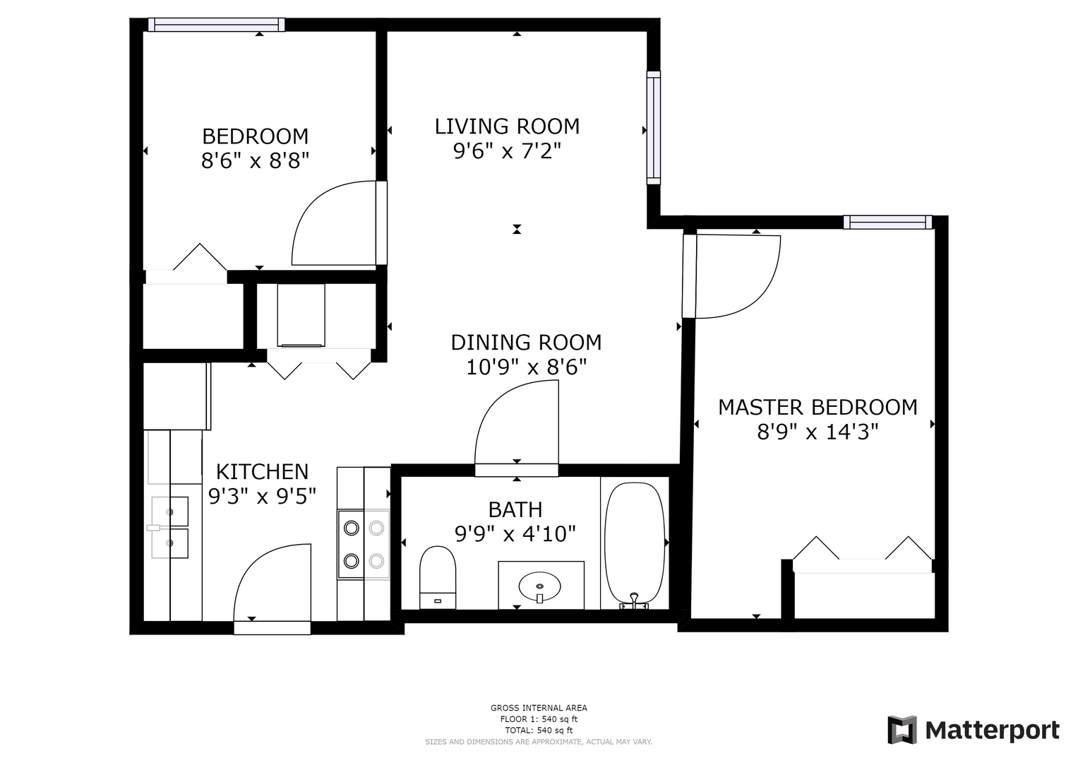 2 Bed 1 Bath - Higher Floors: $1,438