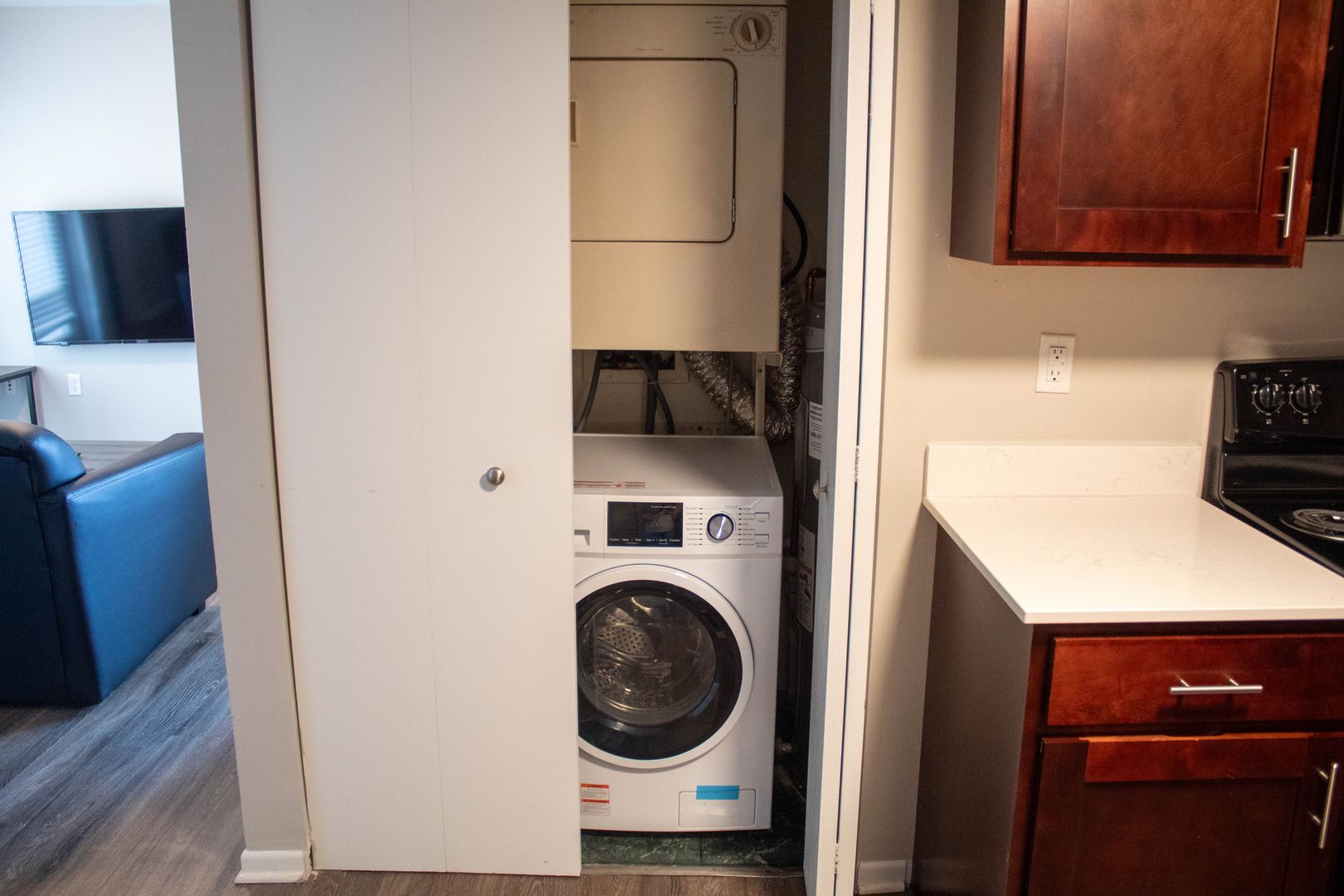 The monthly utility and service fee of $150 covers internet, water, sewer, trash service, and recycling! While internet is provided, the unit does require a router to be provided by the tenant.