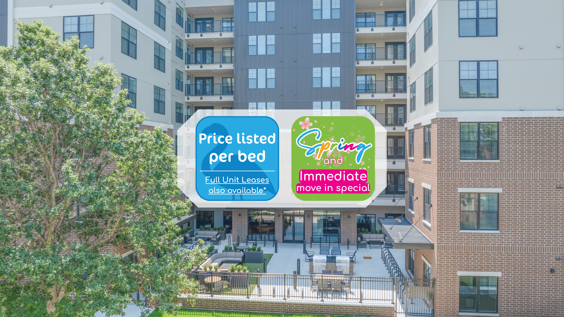 Spring lease, two bed two bath apartment in Midtown neighborhood, priced per person. Text to tour 217-687-1749