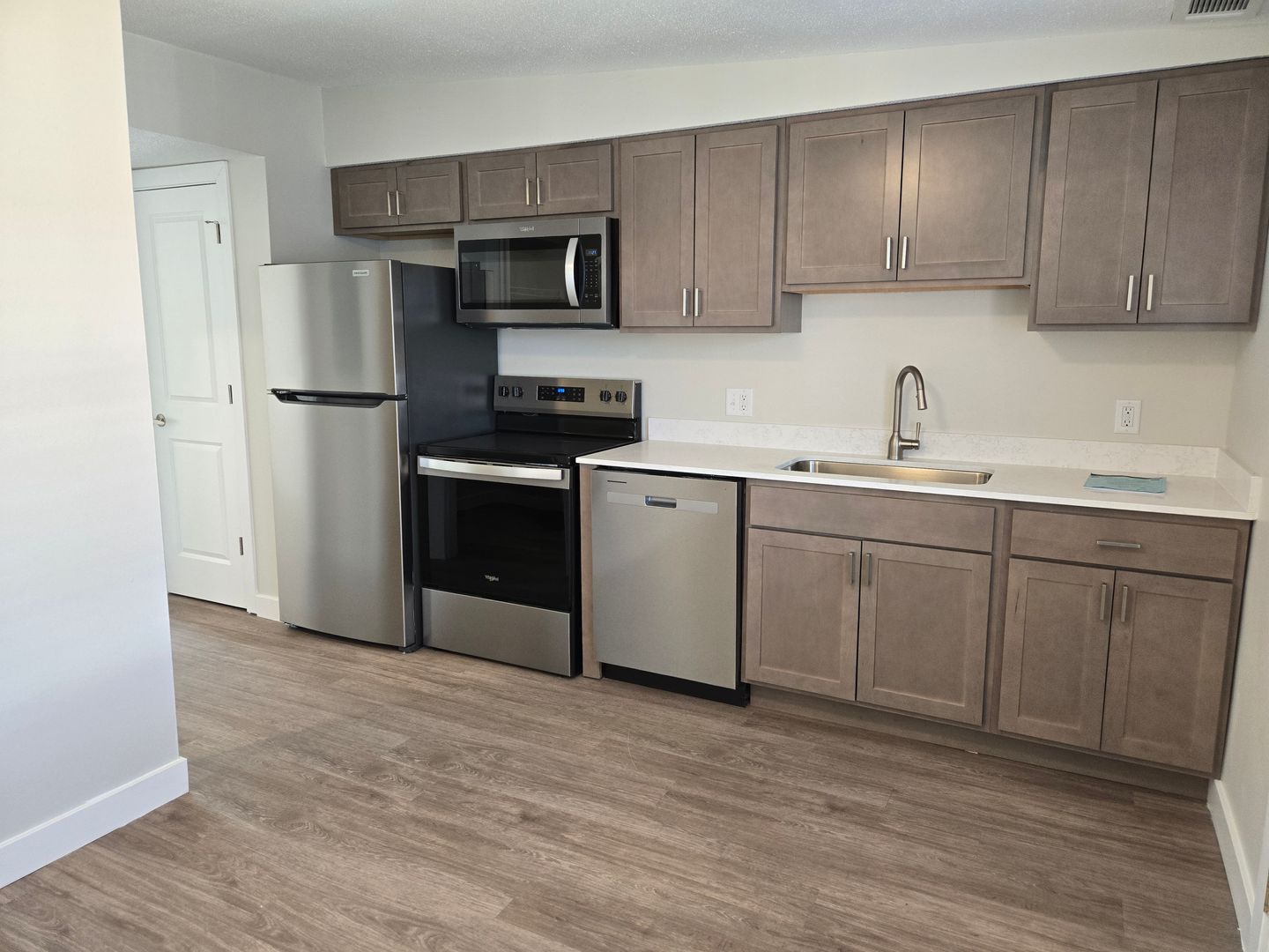 This spacious upstairs 2-bedroom, 1.5-bath apartment is newly remodeled and includes new flooring, cabinets, appliances, countertops, and fixtures. The unit features plenty of natural light, generous living space, a dishwasher, a microwave, and a newly installed washer and dryer conveniently located off the kitchen.