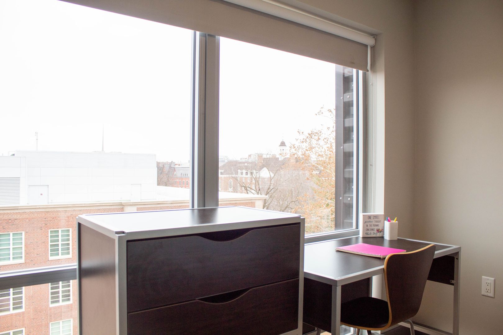 615 Wright features luxury 2-bedroom, 2-bathroom apartments in the heart of Campustown, just a half block north of Alma Mater. Built in 2019, these modern units include plank flooring, updated cabinets and countertops, and come fully furnished. Each apartment offers in-unit laundry, a wall-mounted TV, and high-speed fiber internet. Tenants can enjoy stunning views from the rooftop patio and take advantage of The Flamingo amenity center in the building, which includes a resident lounge, study rooms, and a 24/7 gym.