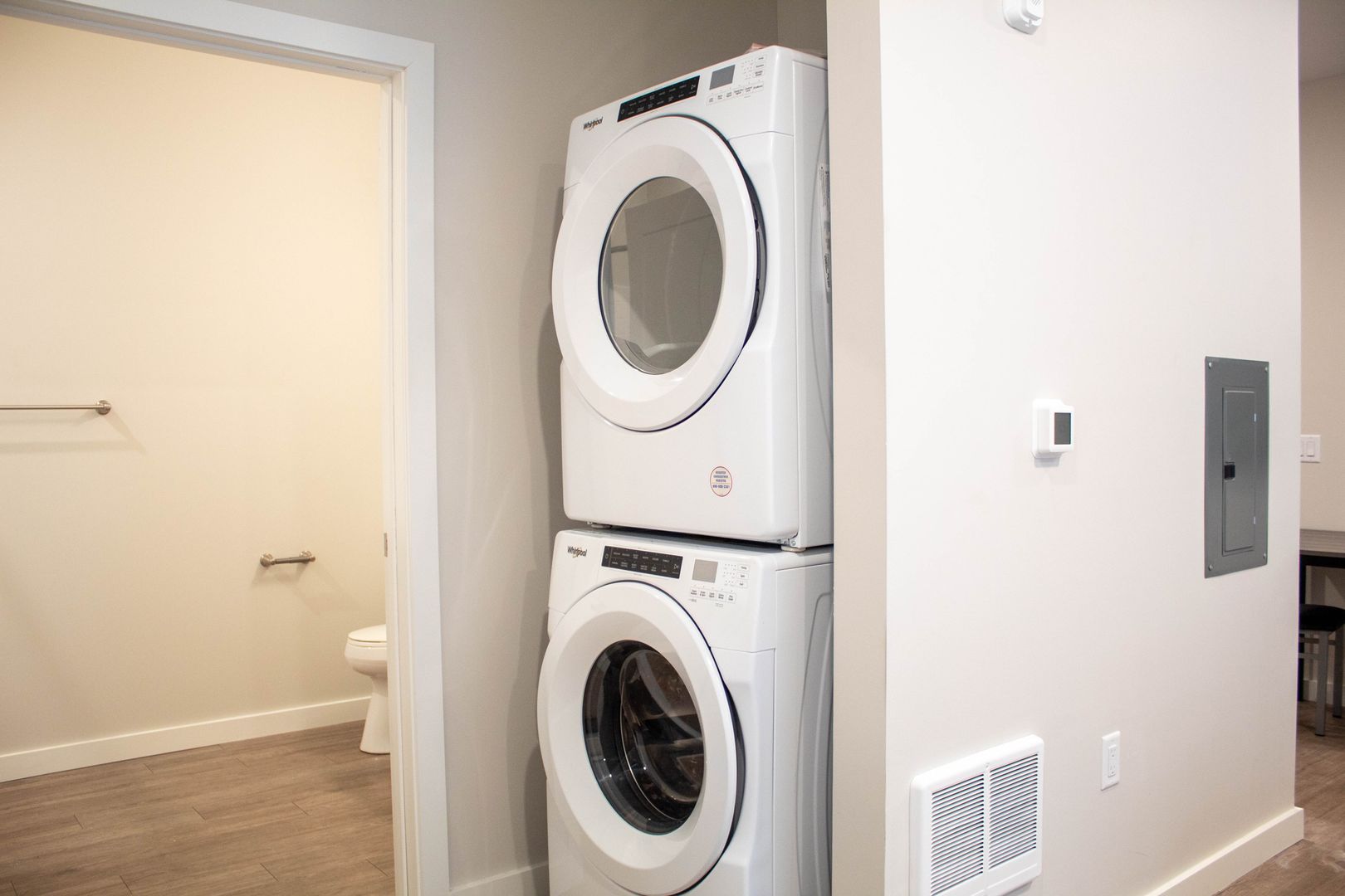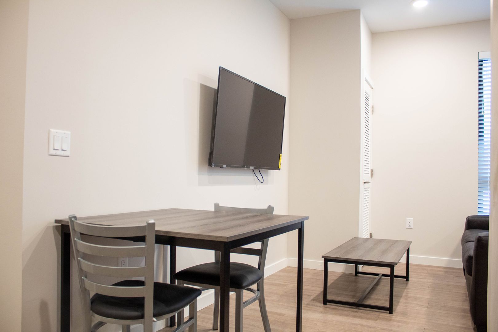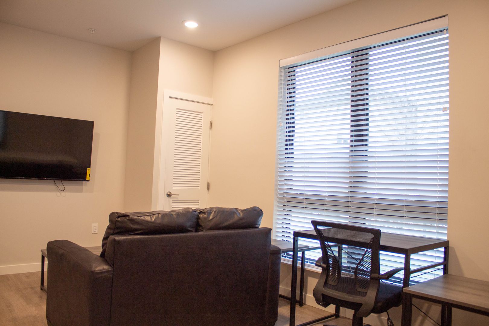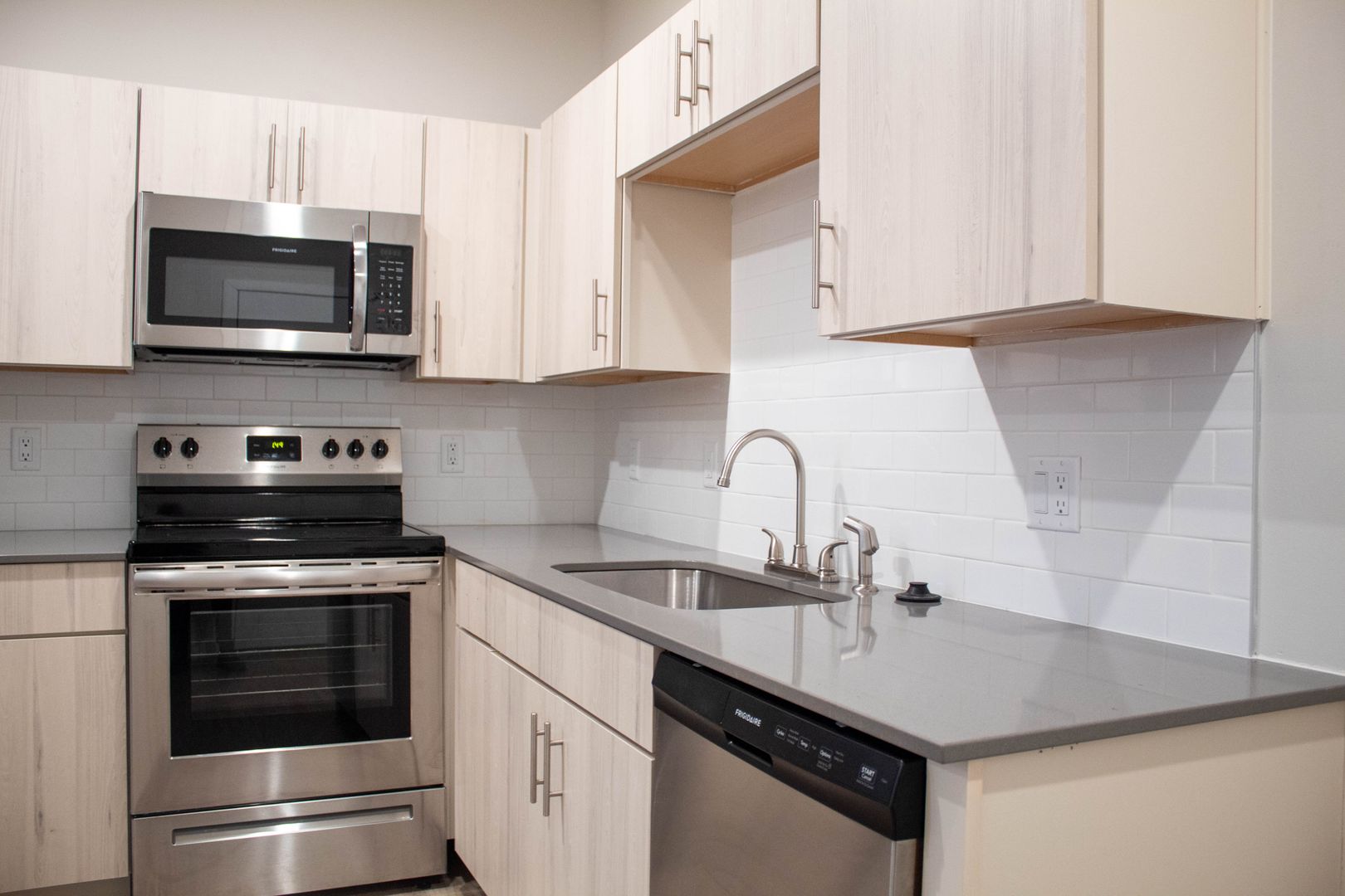 1009 W Stoughton offers new studio apartments with granite countertops, plank flooring, in-unit washer/dryer, dishwasher, and a smart TV. The building is eco-friendly with high-efficiency materials and rooftop solar panels.