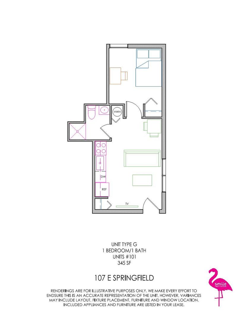 Newly remodeled 1-bedroom apartment near the UIUC campus in Champaign, close to Green Street shops and dining, County Market, Helms Park, and Scott Park. Units include in-unit laundry for your convenience.