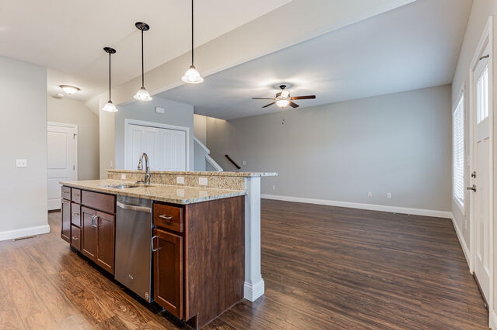 These 3 Bedroom / 2.5 Bath townhomes feature a spacious 1,640 sq. ft. floor plan. Enjoy your eat-in kitchen with stainless steel appliances, quartz countertops, a pantry, and a breakfast bar. The primary suite features a walk-in closet and a private bathroom. There is a designated laundry room with a full-sized washer and dryer and space for storage. All townhomes have an attached garage for parking and an additional parking lot. The unfinished basement is great for extra storage.