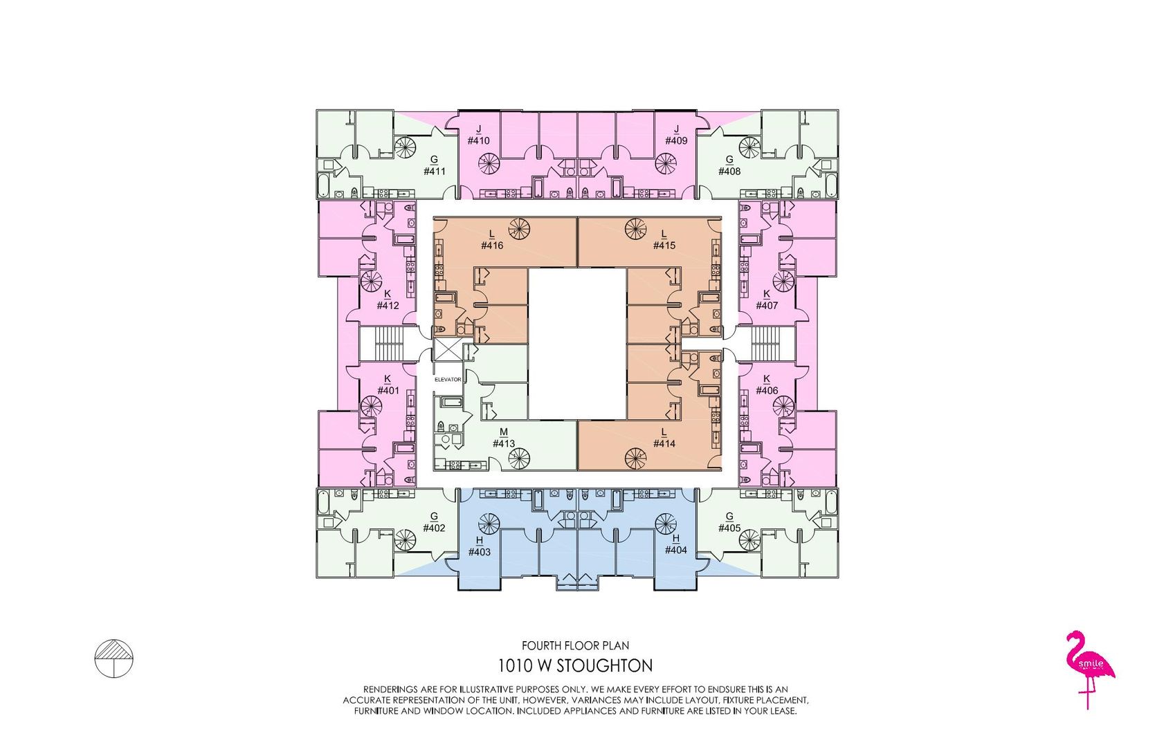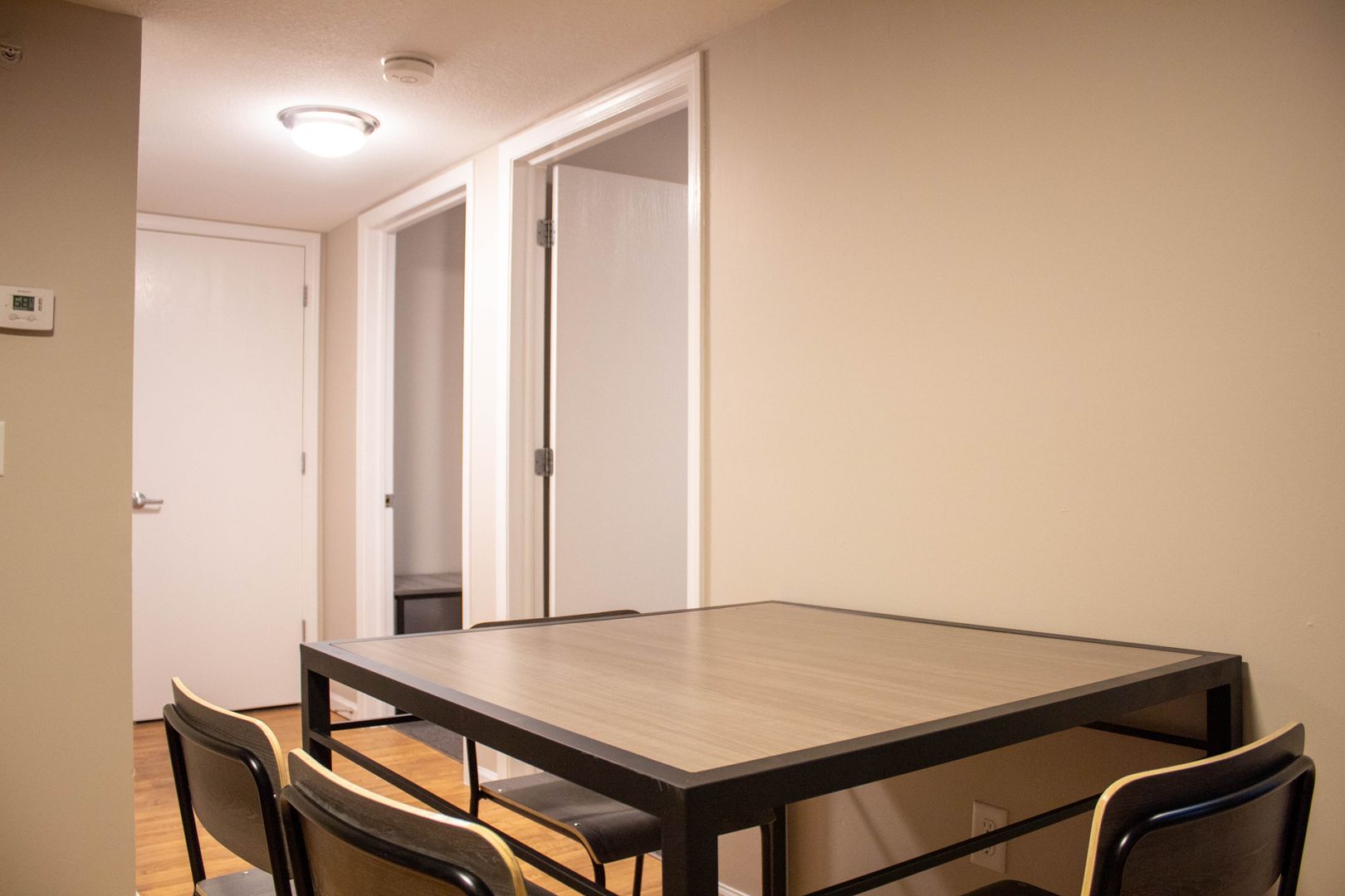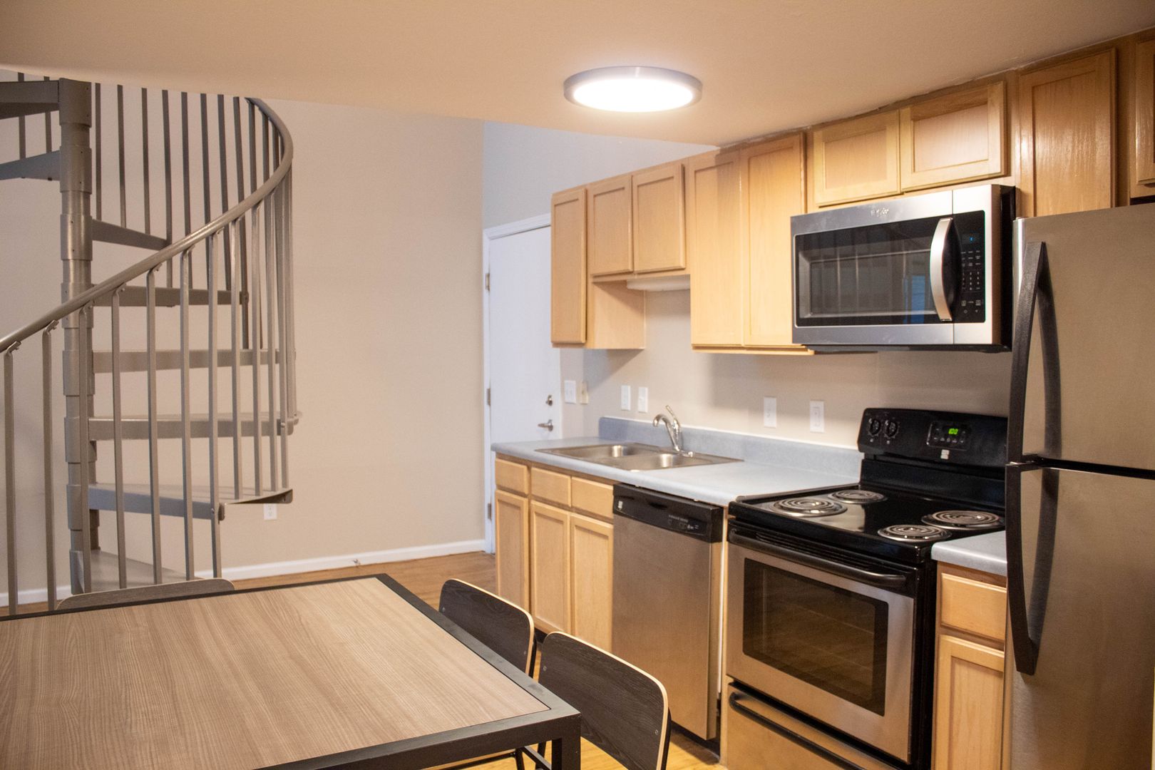 These upgraded lofted 3-bedroom, 1.5-bath apartments are just a few blocks from the UIUC Engineering campus in one of the greenest campus neighborhoods. Most units include access to a shared balcony, with dining options nearby on University Ave and Green St. All units feature in-unit laundry and a dishwasher.