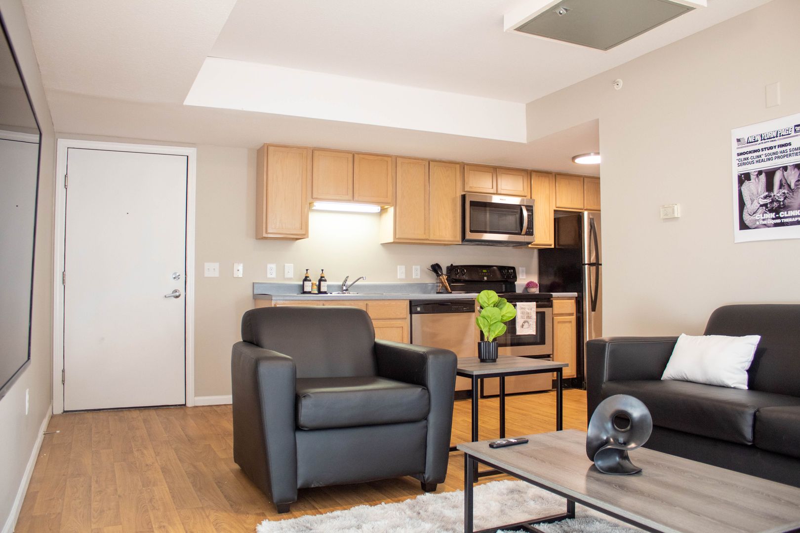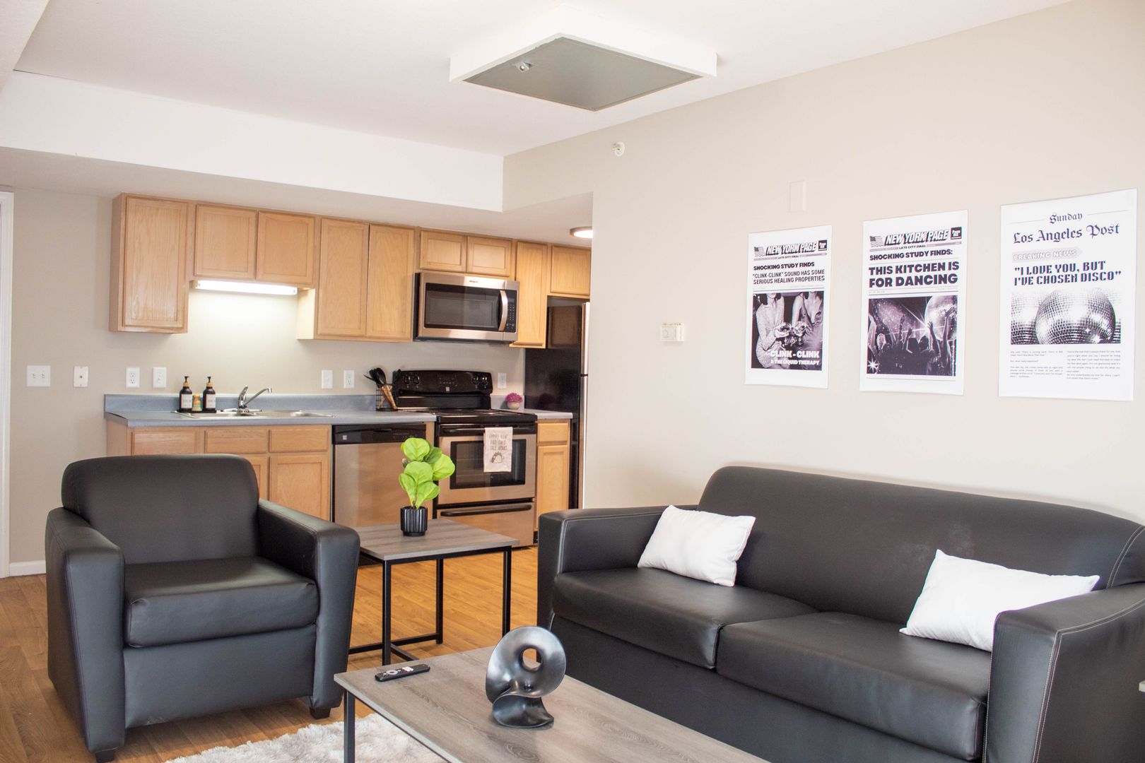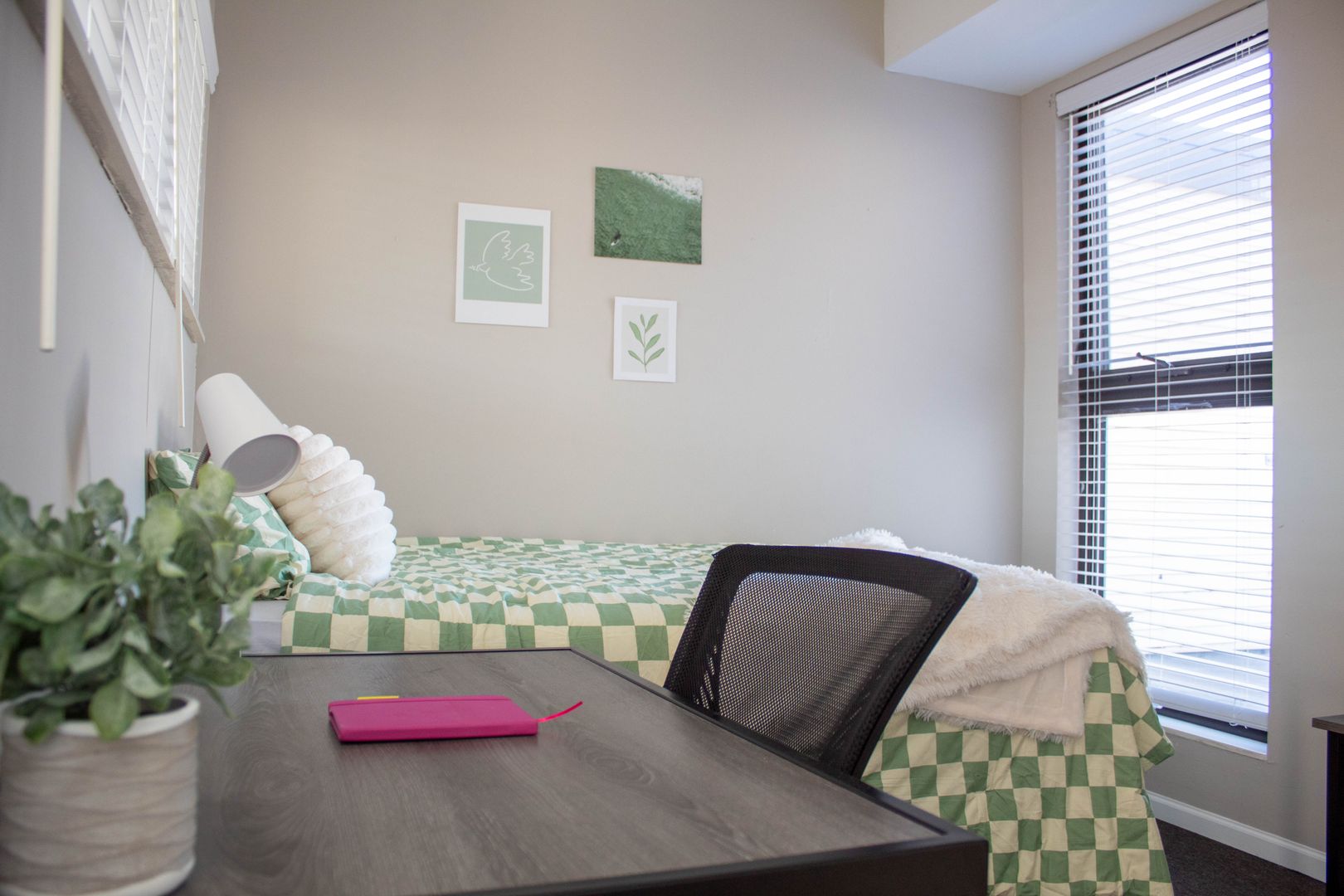These upgraded lofted 3-bedroom, 1.5-bath apartments are just a few blocks from the UIUC Engineering campus in one of the greenest campus neighborhoods. Most units include access to a shared balcony, with dining options nearby on University Ave and Green St. All units feature in-unit laundry and a dishwasher.