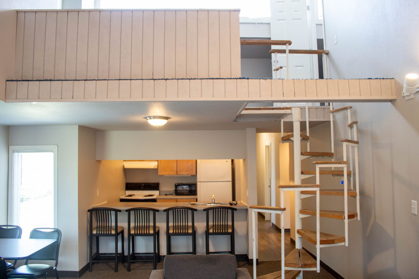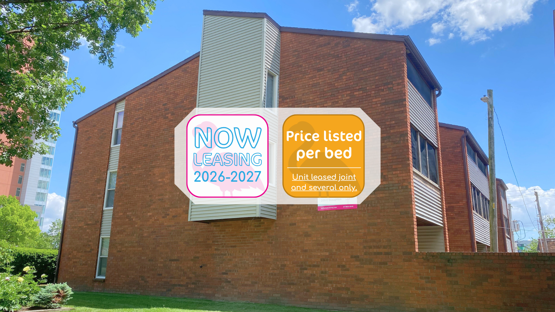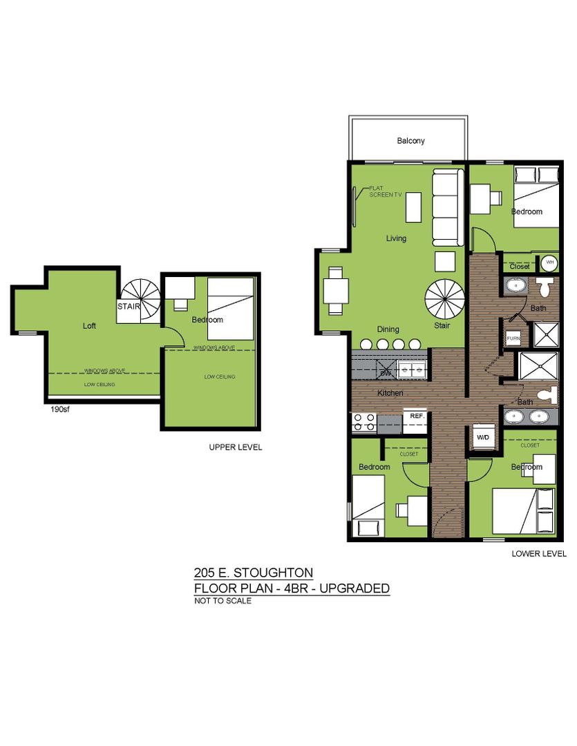 These lofted 4-bedroom, 2-bath apartments are near County Market and the Engineering Quad, with Scott Park just across Springfield Ave. Units include in-unit laundry, track lighting in the bedrooms, a 65" Smart TV, and access to a secure bike room.