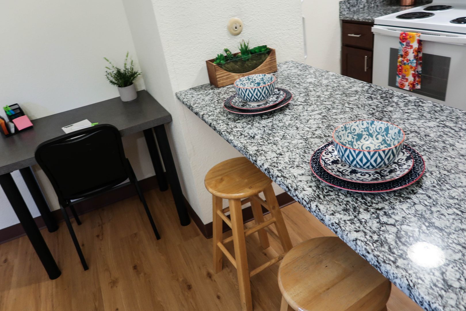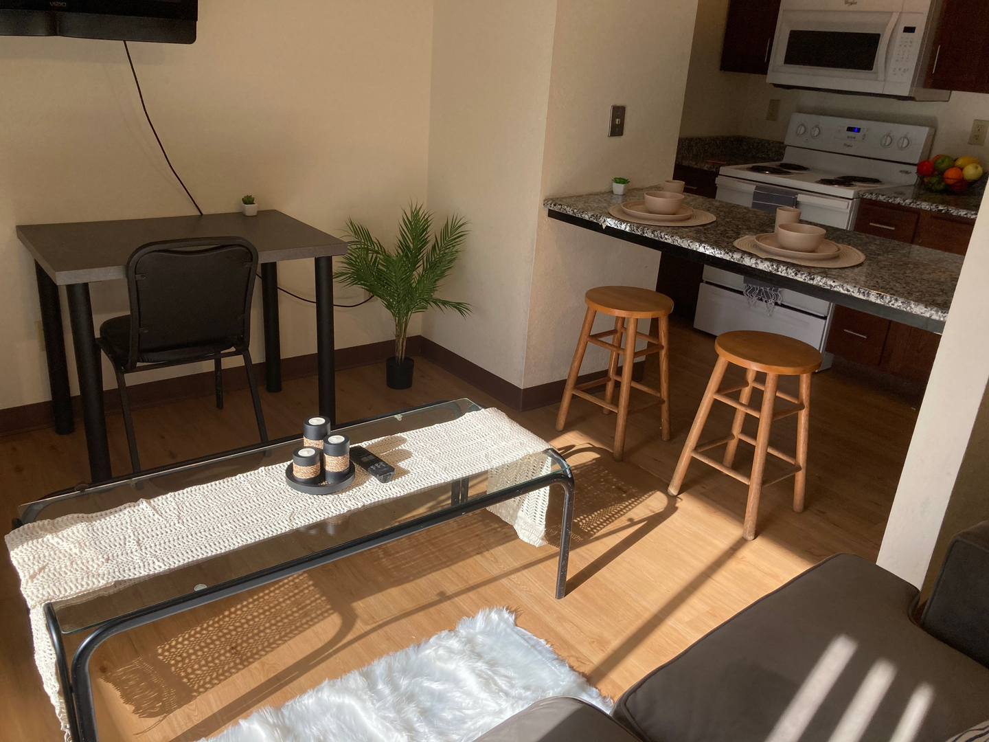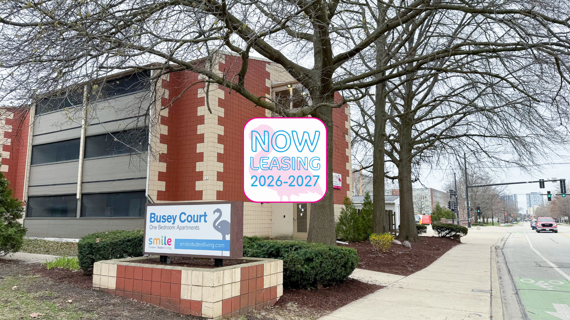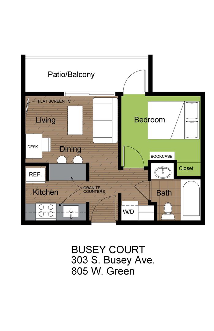 Busey Court features updated, secure first-floor 1-bedroom apartments with a private screened-in patio, granite countertops, plank flooring, a flat-screen TV, and in-unit laundry. Located in a quiet Urbana community, these apartments are close to downtown shops and the Krannert Center, with a bus stop conveniently across the street.