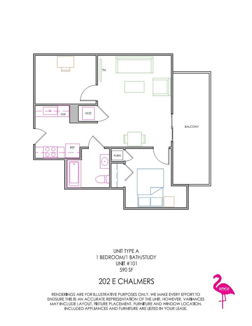 These newly remodeled 1-bedroom apartments are close to the main quad on campus at the University of Illinois. This location gives you easy access to classes and Green St. Enjoy park views from your large balcony. Units feature vinyl plank flooring, new kitchens with stainless steel appliances, quartz countertops, new carpet, paint, and fixtures throughout.