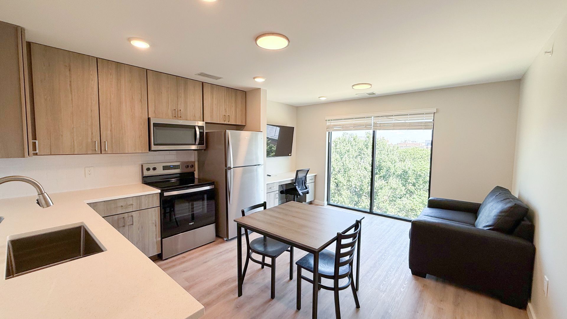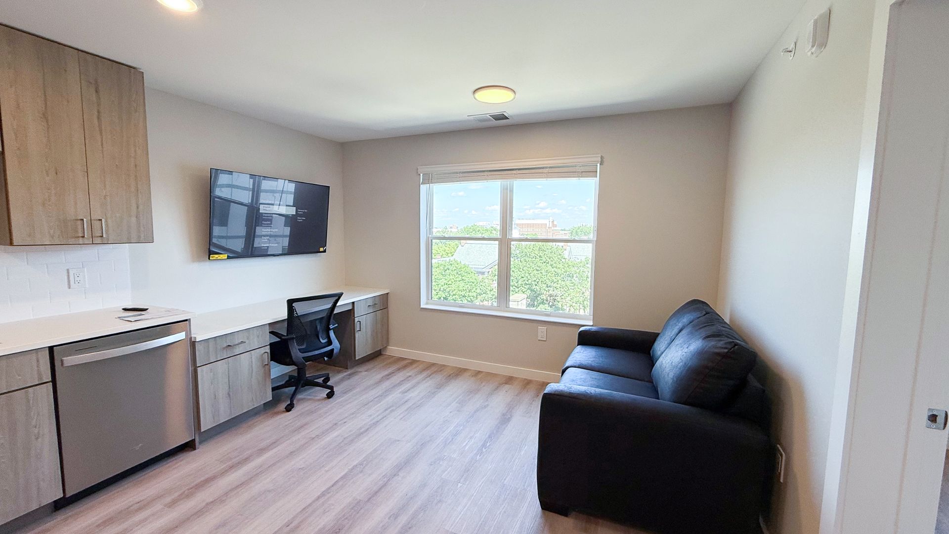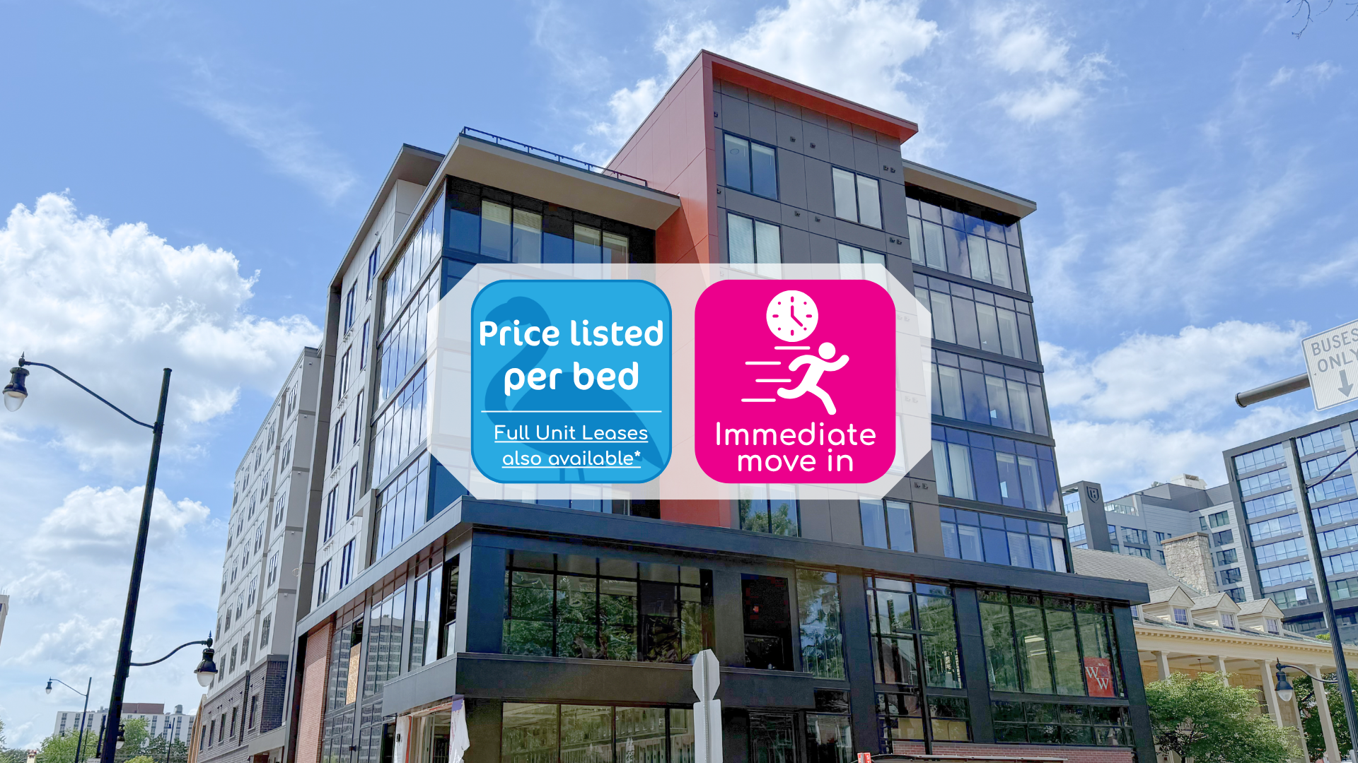 Immediate availability! The price listed is per bed, not per apartment. Located right across from the Main Quad, these new 1-bedroom, 1-bathroom apartments feature stainless steel appliances (fridge, microwave, dishwasher, and stove), plank flooring, and an in-unit front-load washer/dryer. Relax on the rooftop deck or study in one of the conference rooms on the first floor.