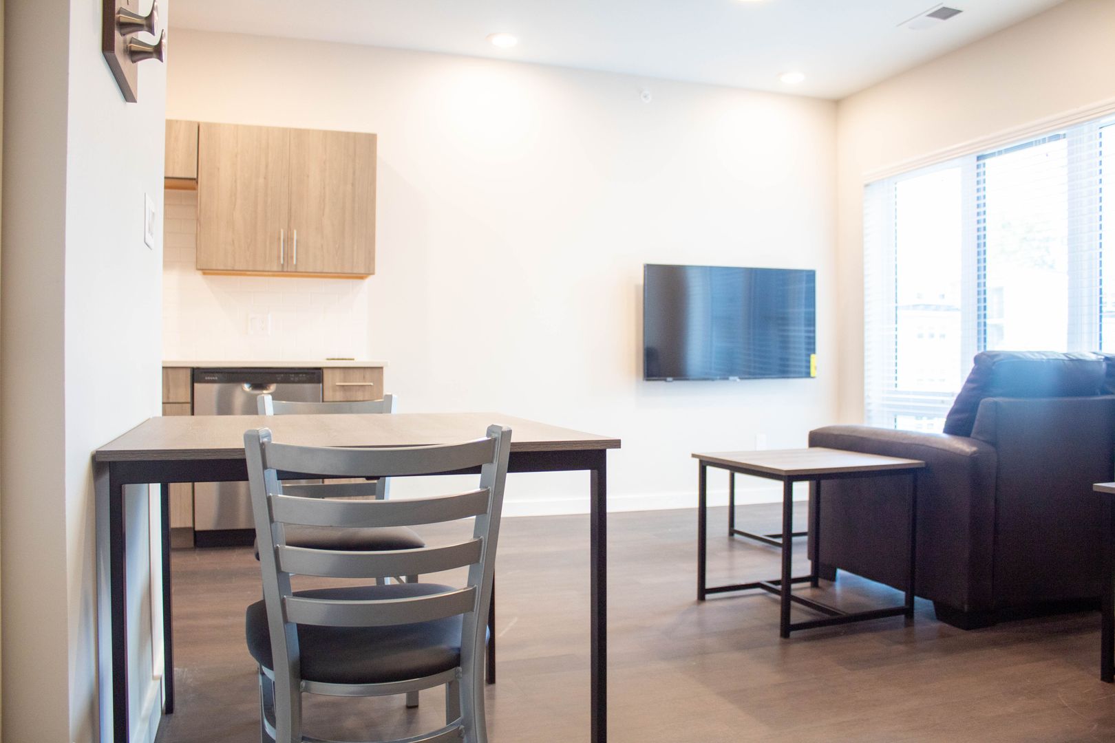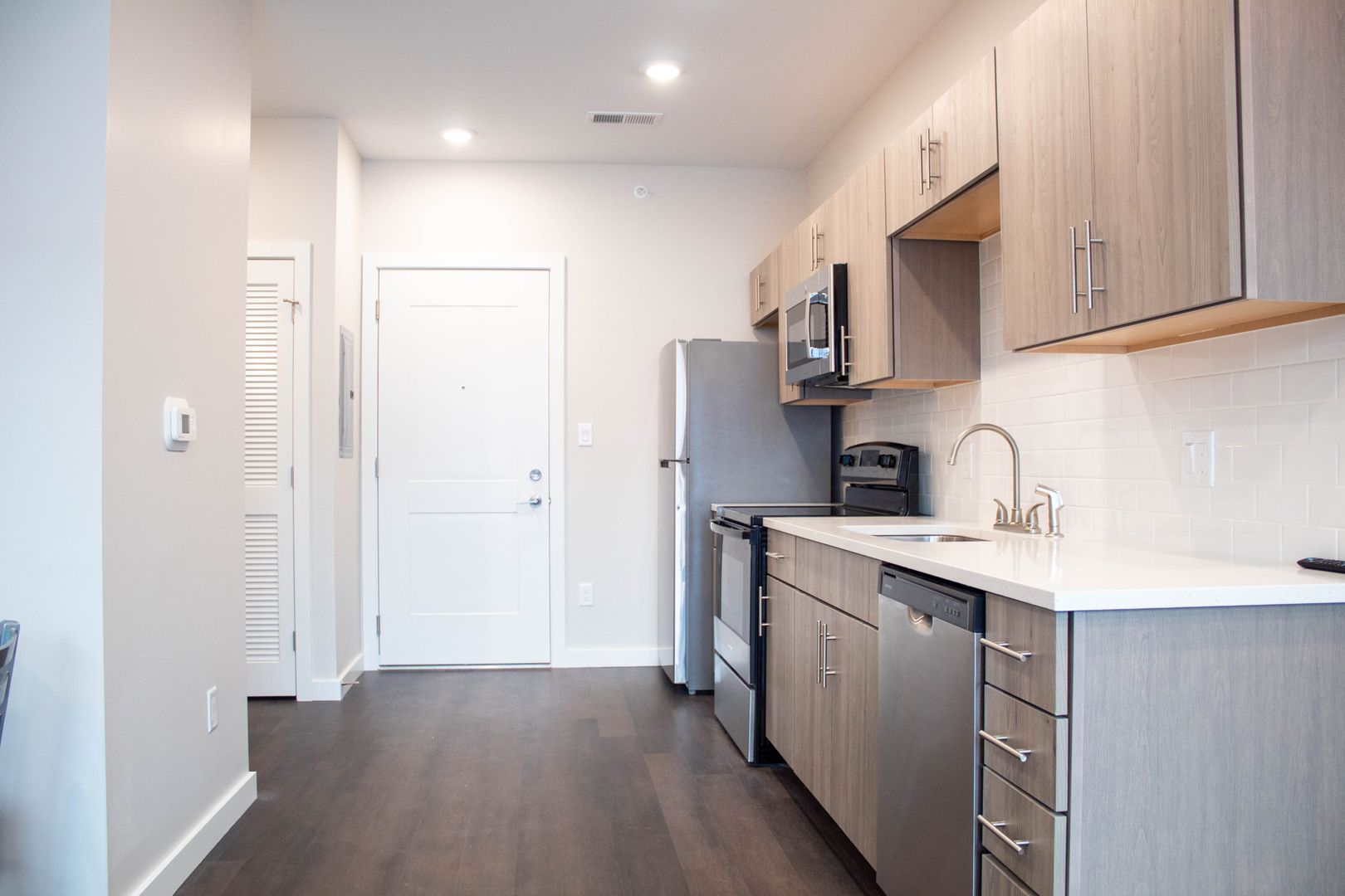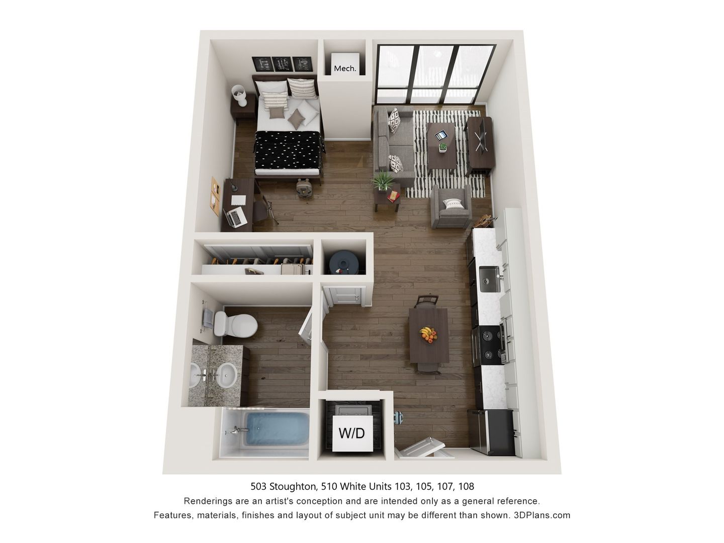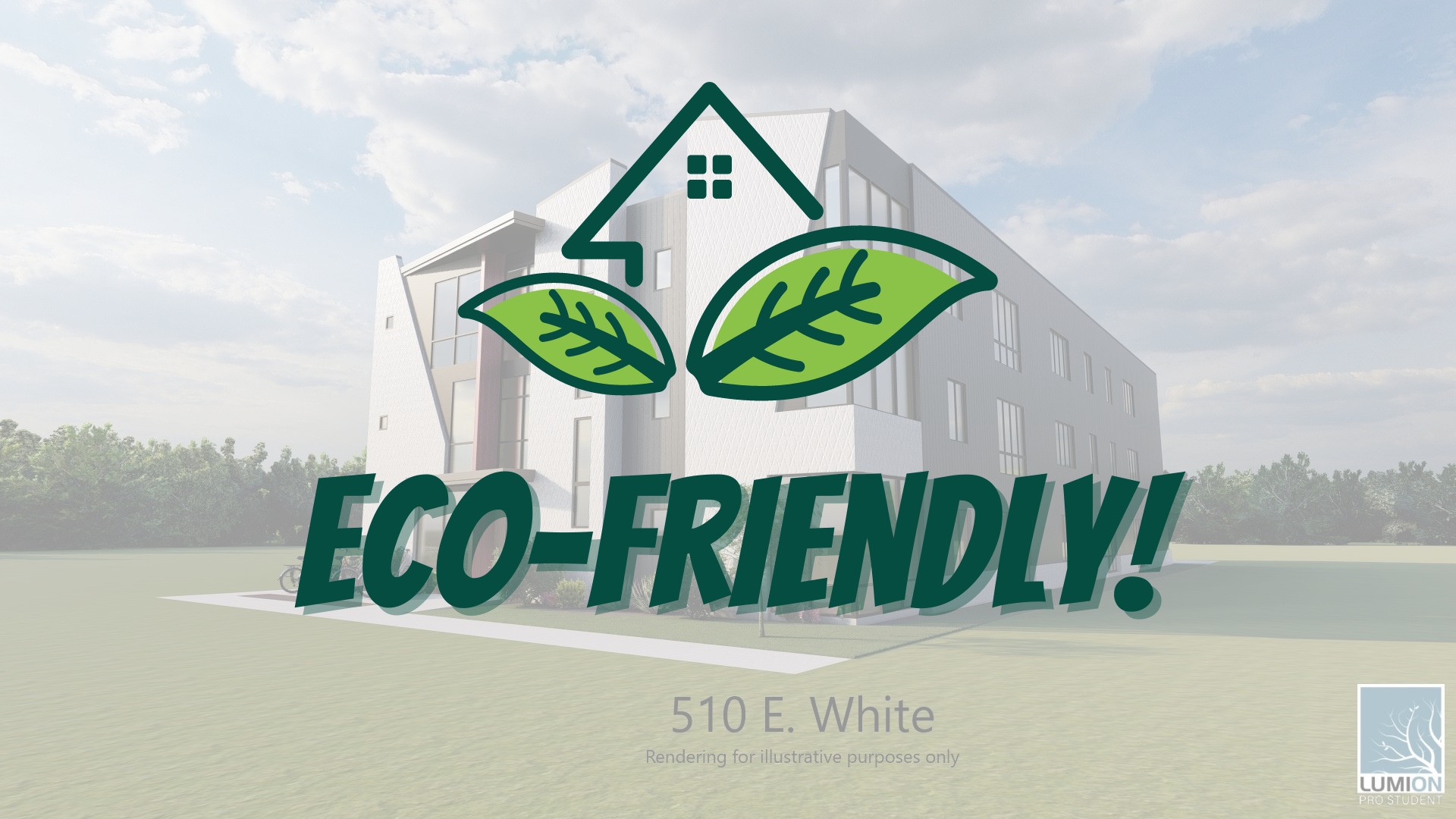 510 E White offers new studio apartments with granite countertops, a dishwasher, plank flooring, a smart TV, and in-unit laundry. Convenient bus lines nearby, in an eco-friendly building with high-efficiency materials and rooftop solar panels.