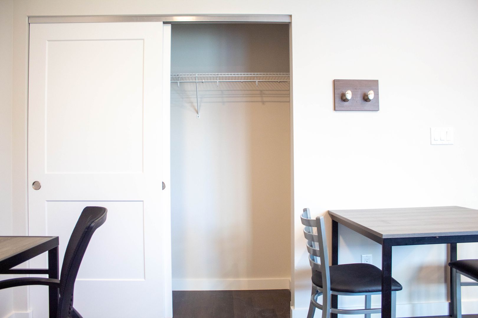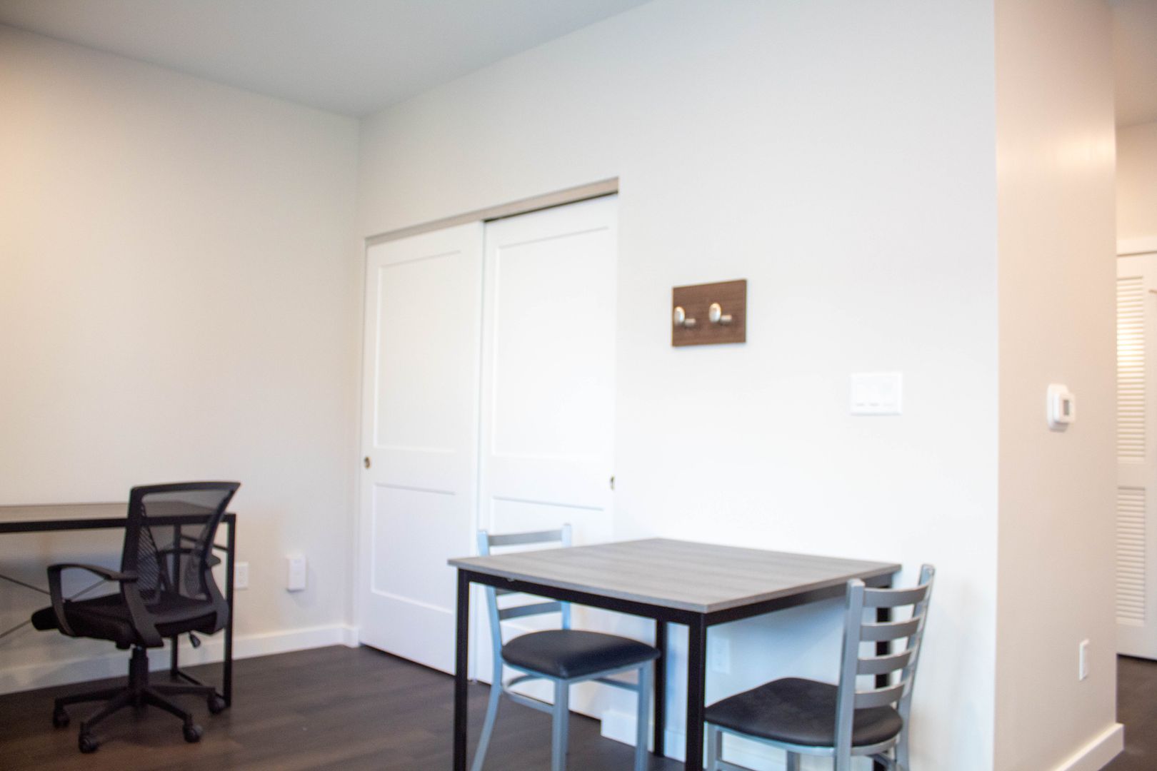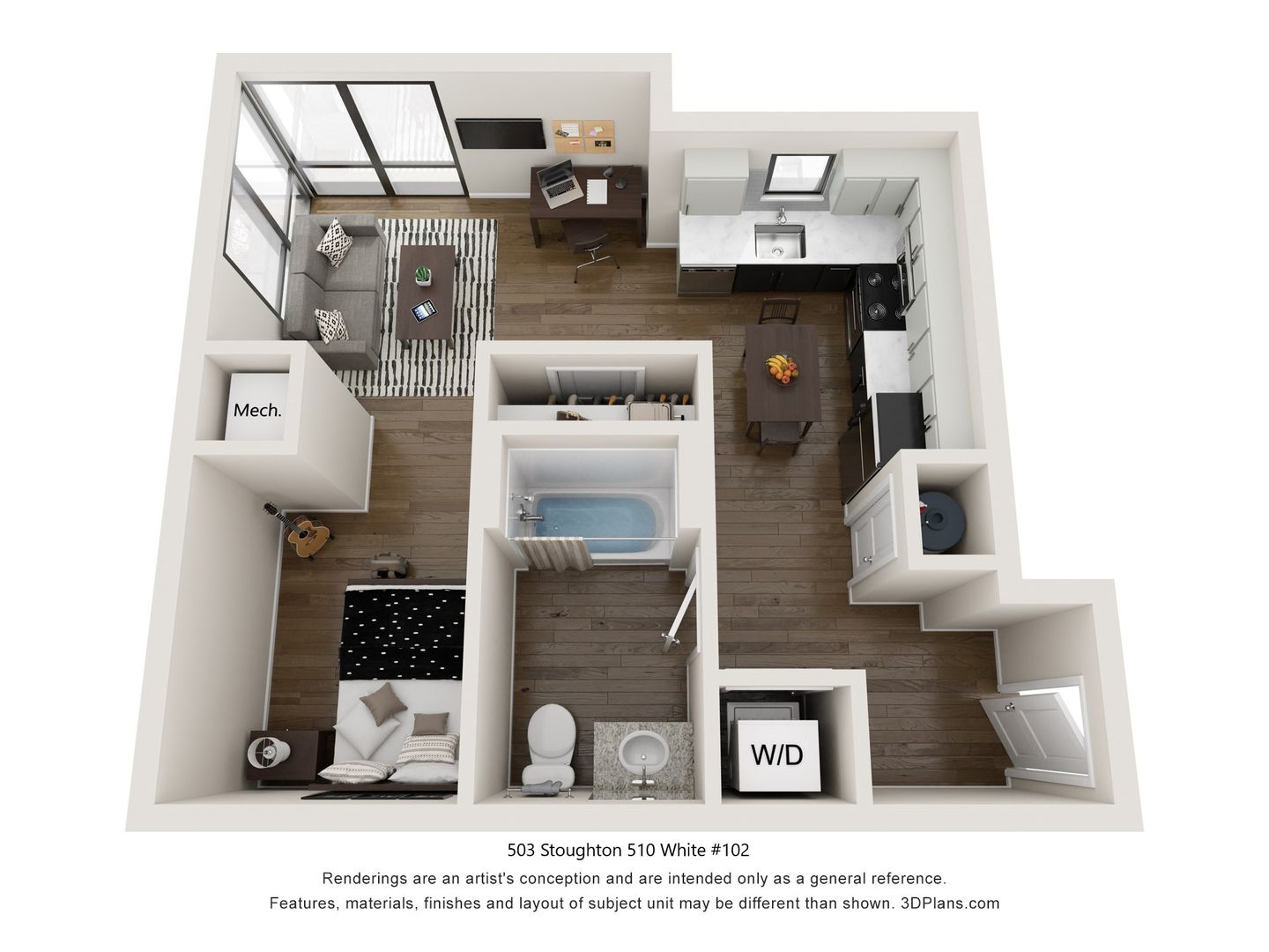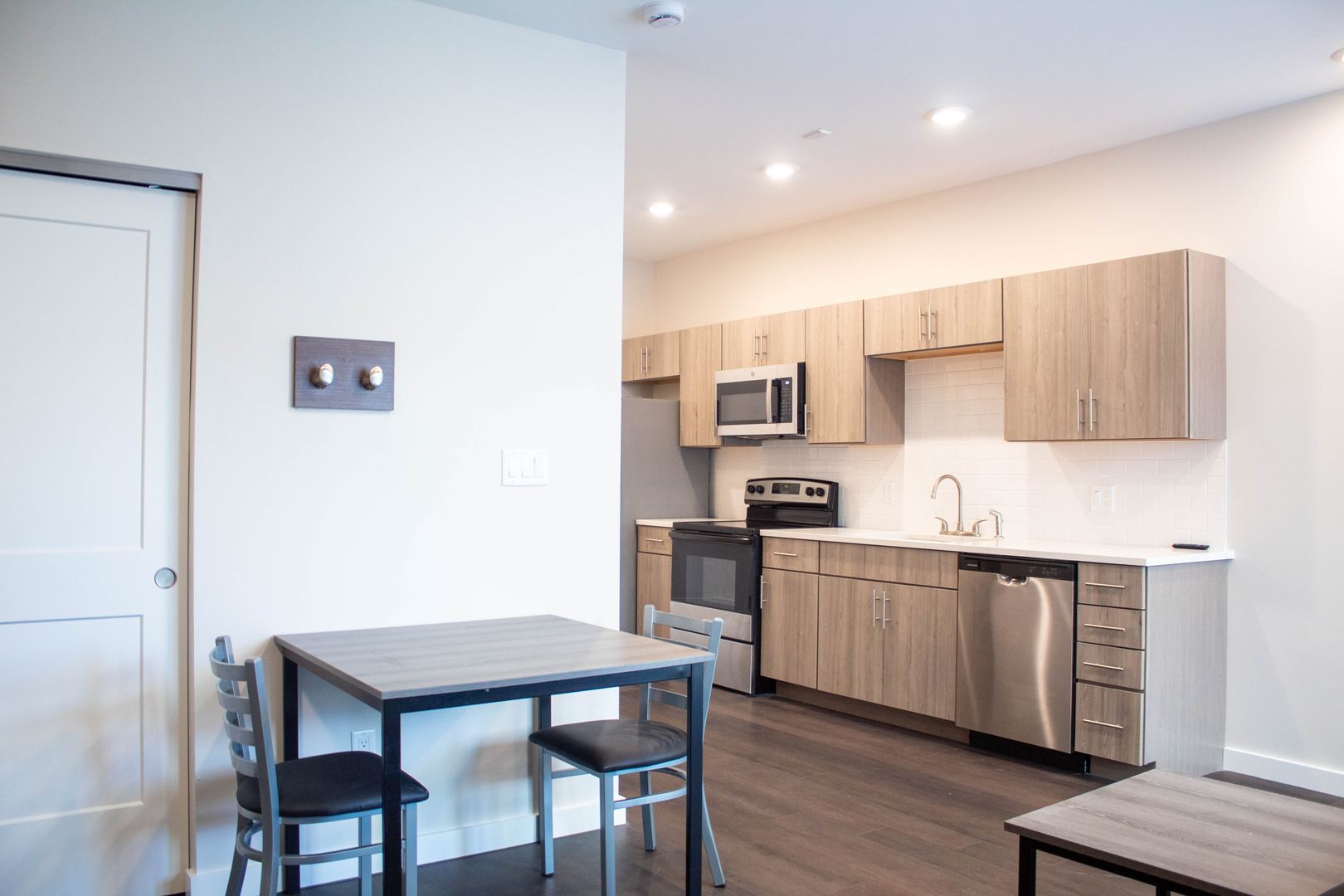 510 E White offers new studio apartments with granite countertops, a dishwasher, plank flooring, a smart TV, and in-unit laundry. Convenient bus lines nearby, in an eco-friendly building with high-efficiency materials and rooftop solar panels.
