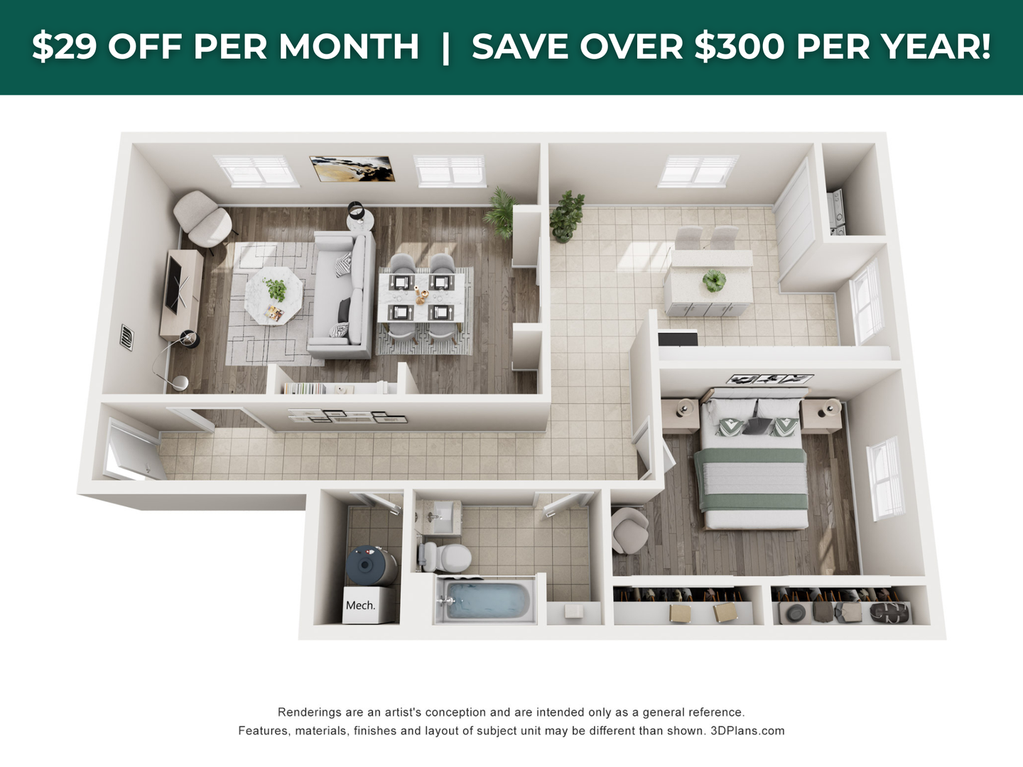 INDIVIDUAL LEASE: Modern 1-bedroom, 1-bath apartment with open-concept living. Enjoy a full kitchen with stainless steel appliances, in-unit washer/dryer, and ample closet space.