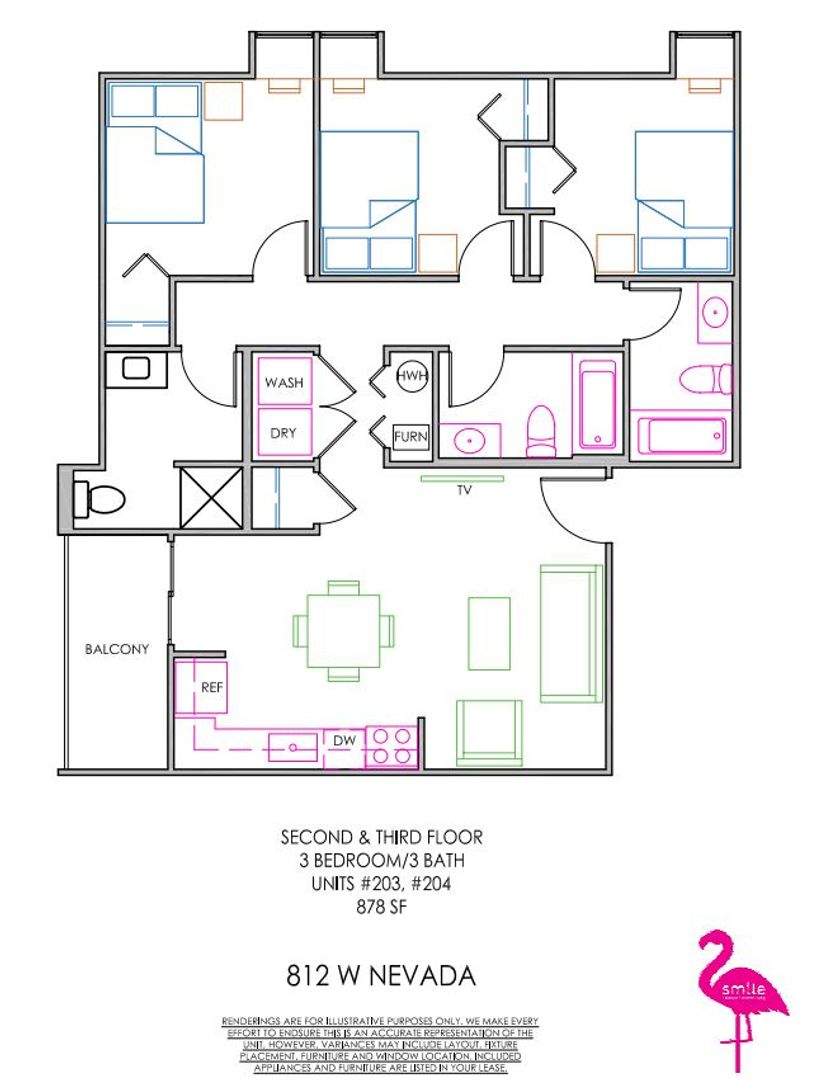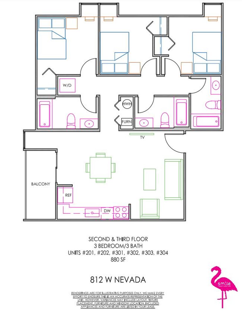 Remodeled 3-bedroom, 3-bathtoom apartments near The Krannert Center! Text to tour 217-393-8960