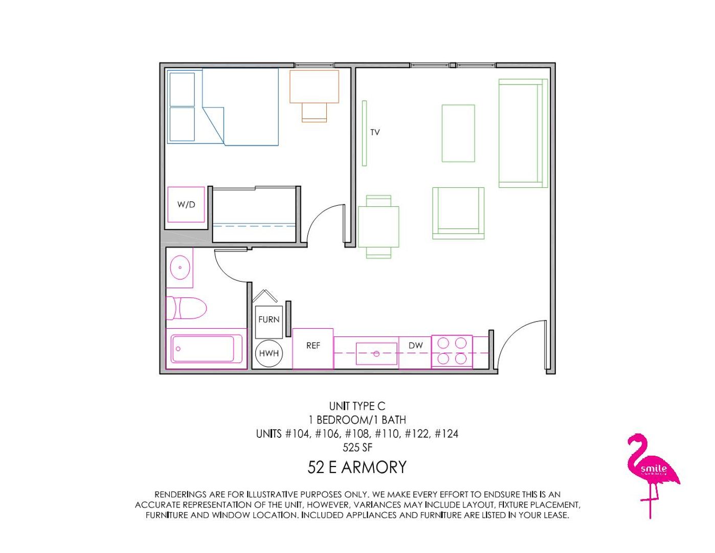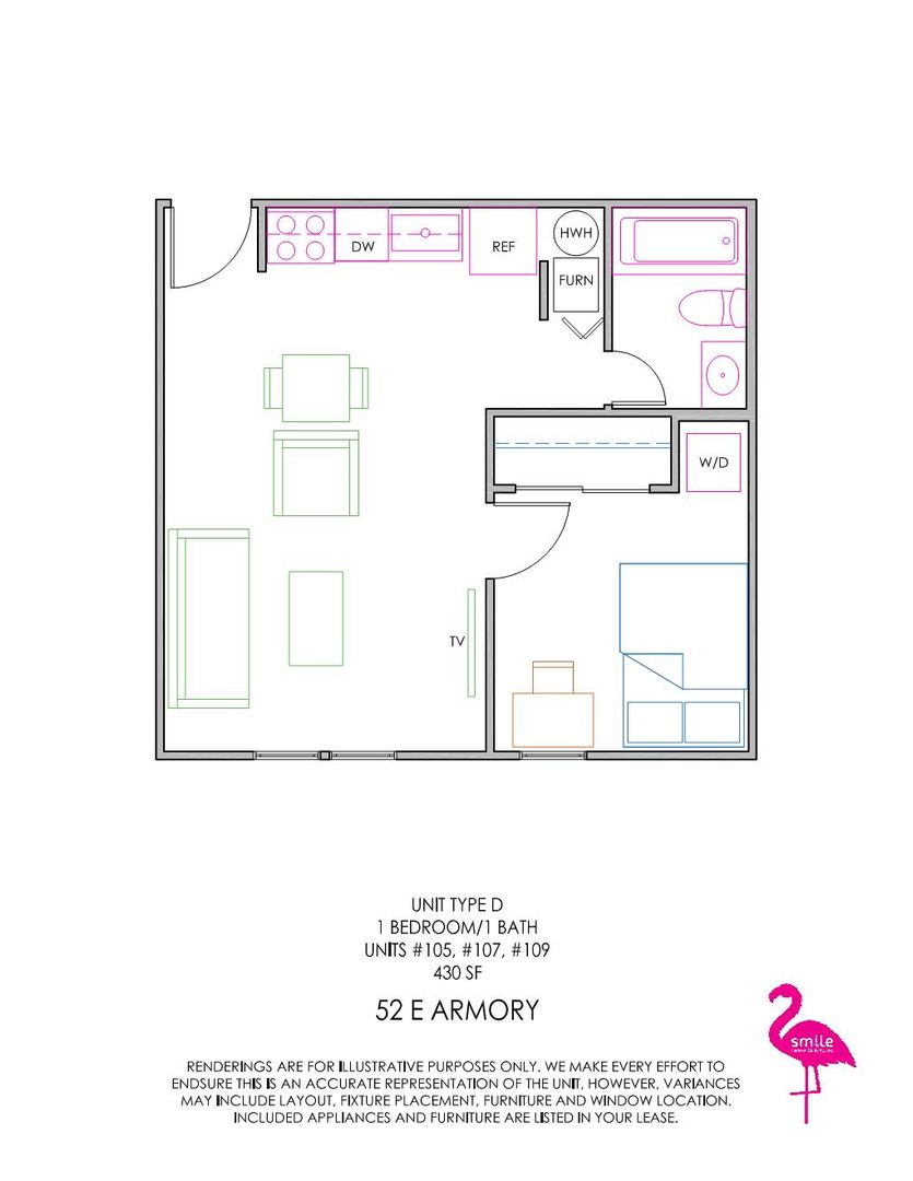 These remodeled 1-bedroom apartments are located in the heart of Seniorland on the UIUC campus. Units come fully furnished and are just a short walk from Green Street bars and restaurants. Newly remodeled units include in-unit laundry, brand-new kitchens with stainless steel appliances including a dishwasher, vinyl plank flooring, quartz countertops, and updated carpet, paint, and lighting.
