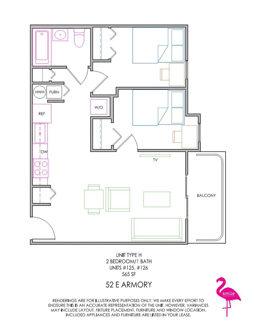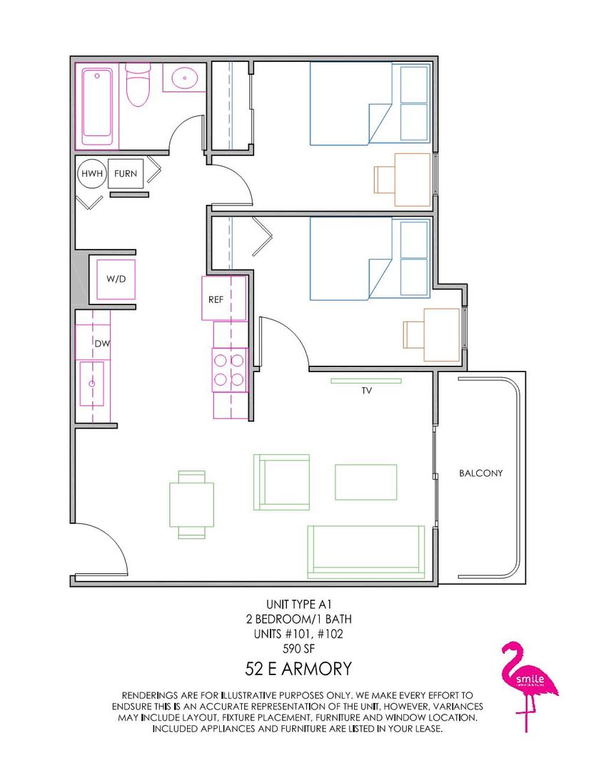 These remodeled 2-bedroom, 1-bathroom apartments are located in the heart of Seniorland on the UIUC campus. Units come fully furnished and are just a short walk from Green Street bars and restaurants. Newly remodeled units include in-unit laundry, brand-new kitchens with stainless steel appliances including a dishwasher, vinyl plank flooring, quartz countertops, and updated carpet, paint, and lighting.