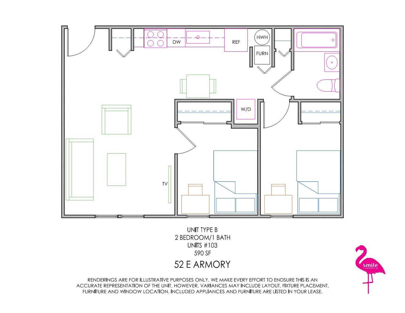 Prices displayed are for individual leases. This property offers both individual and joint and several leasing options. Please contact Smile Student Living for more information.
