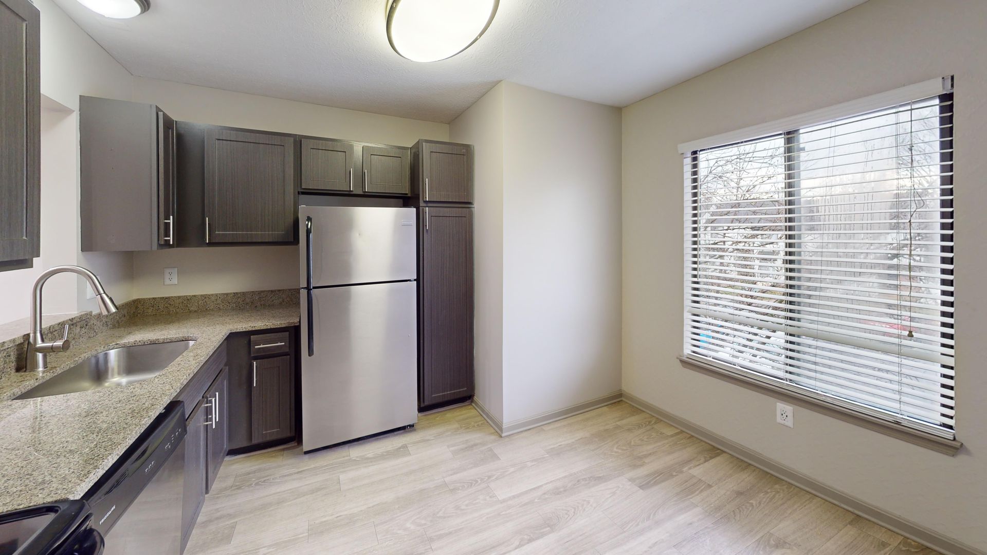 These one-bedroom, one-bathroom Shelby apartments feature 741 sq. ft. of stylishly renovated living space. Enjoy modern finishes throughout, including stainless steel appliances, granite countertops, and wood-style flooring.
