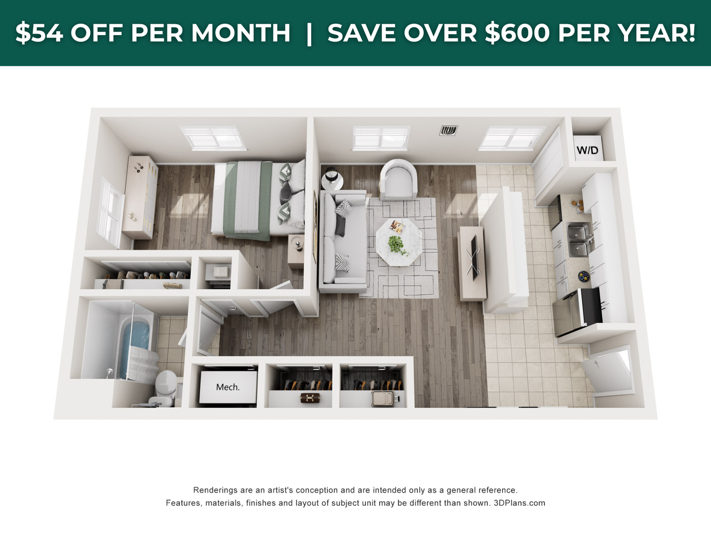 INDIVIDUAL LEASE: Modern 1-bedroom, 1-bath apartment with open-concept living. Enjoy a full kitchen with stainless steel appliances, in-unit washer/dryer, and ample closet space.