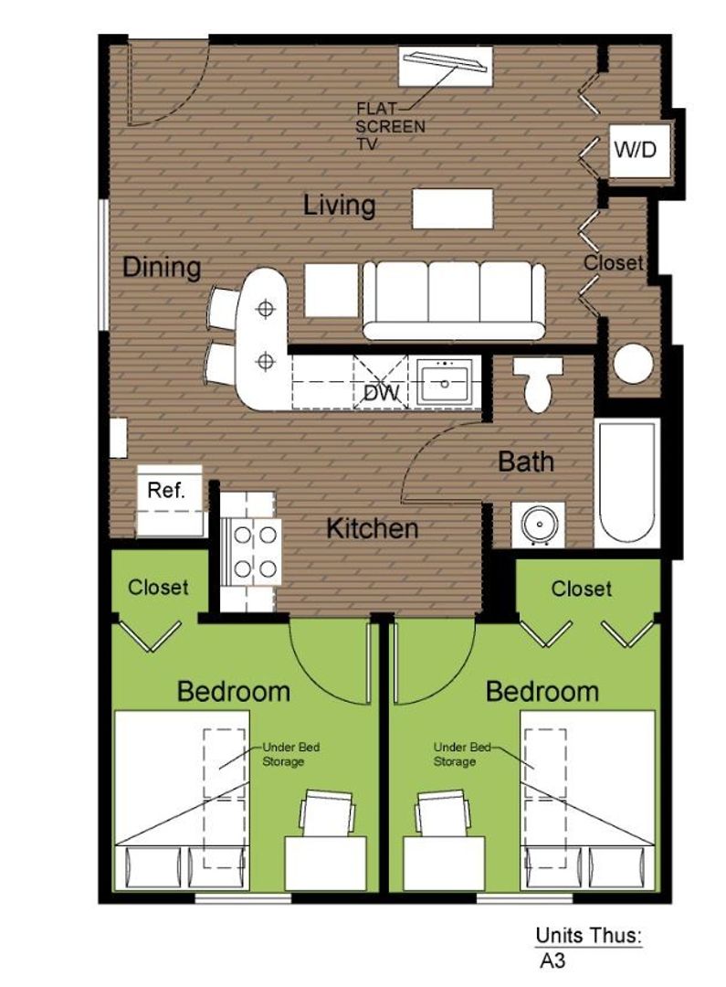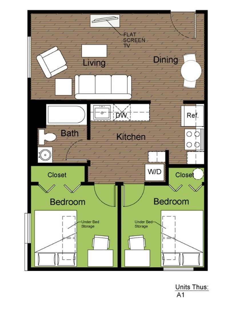 2 Bedroom 1 Bath First Floor: $639 (Full Unit $1,278)